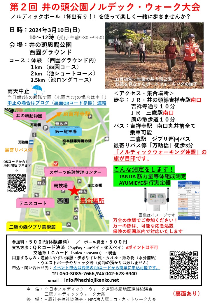 第2回 井の頭公園ノルディック・ウォーク大会が下記の日時で開催されます