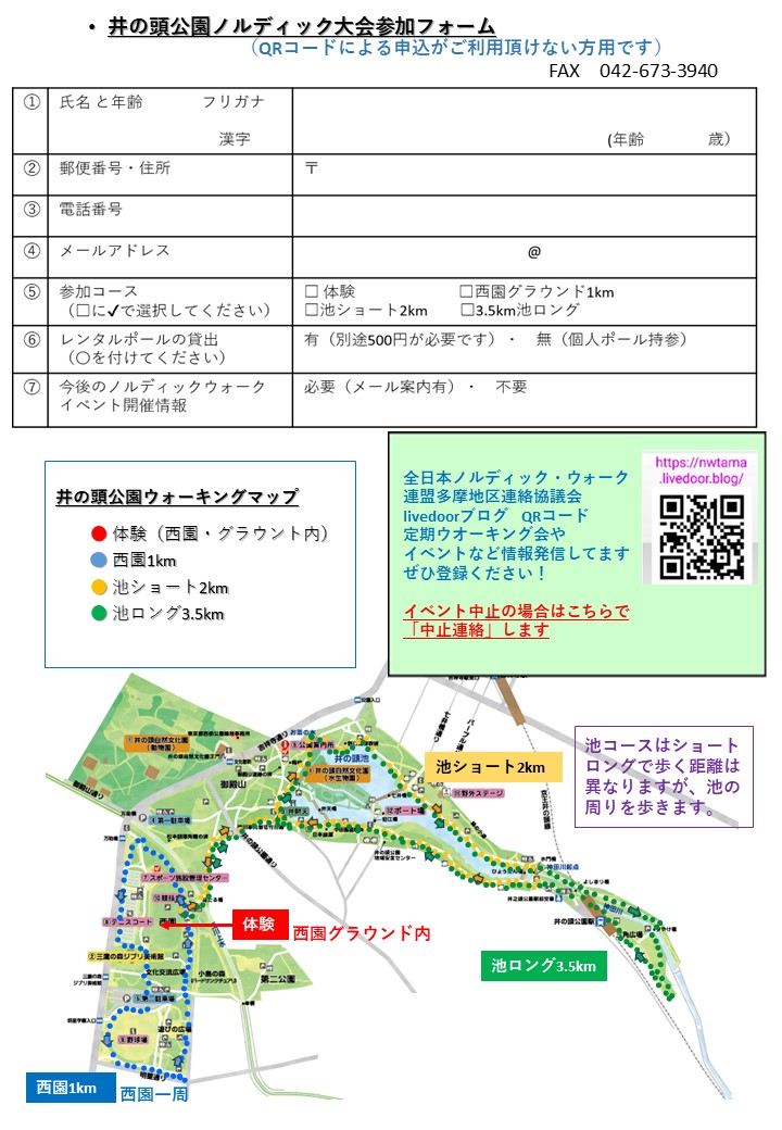 第2回 井の頭公園ノルディック・ウォーク大会が下記の日時で開催されます